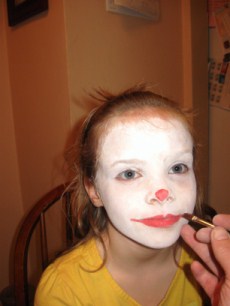 Step 2 on How to Paint a Clown Face: Apply the Clown Smile and Nose